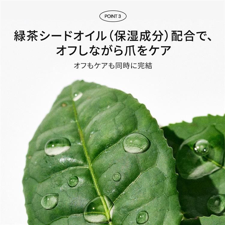 穏やかにオフし、うるおいを与え、しっとりとした指先で、ネイルチェンジを楽しめます。