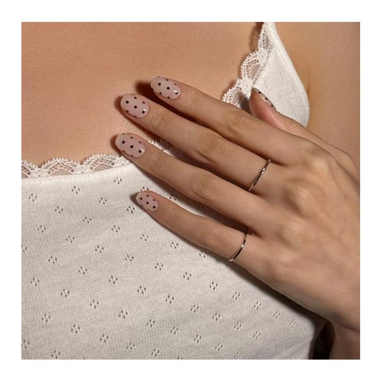 シンプルだからこそキュートに目立つブラックドットネイル。