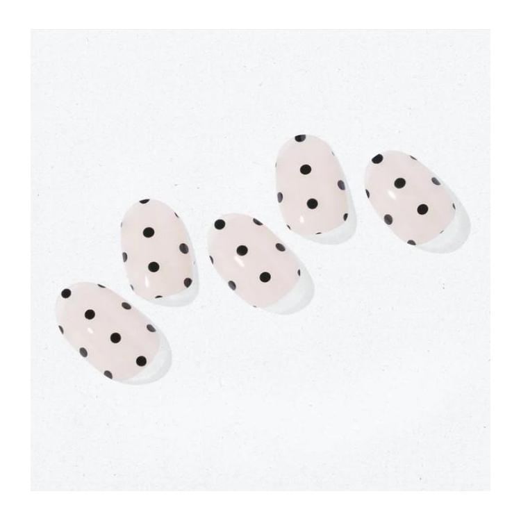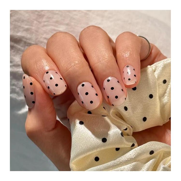 やわらかなヌードトーンのベースに黒の水玉をリズミカルに配置。
