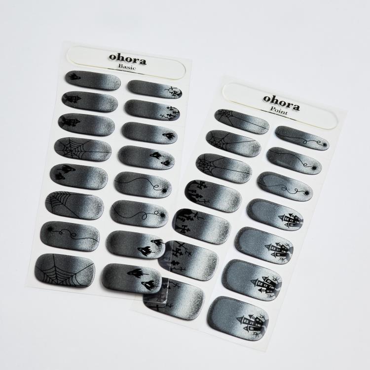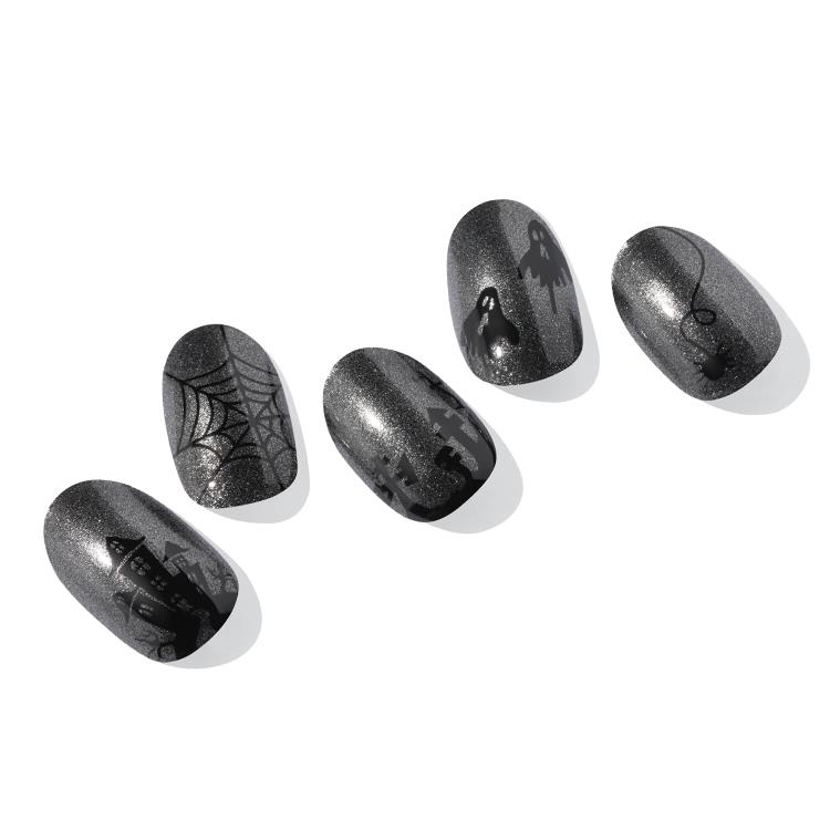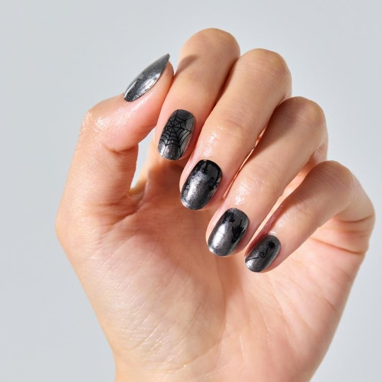 ハロウィンの悪夢を思わせるブラックネイルデザイン。