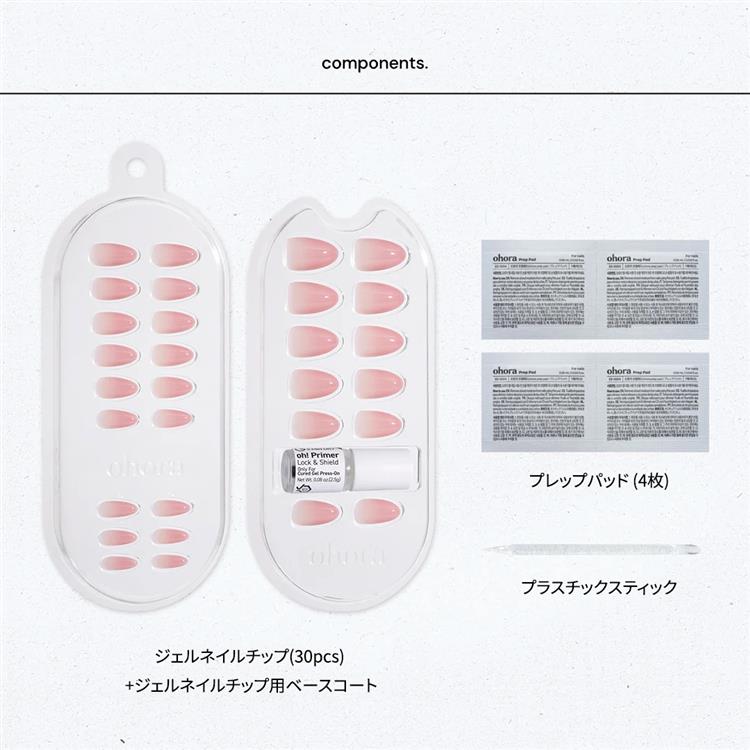 内容量:(ジェルネイルチップ )30pcs、(ジェルネイル用ベースコート)1個、(プラスティックスティック)1個