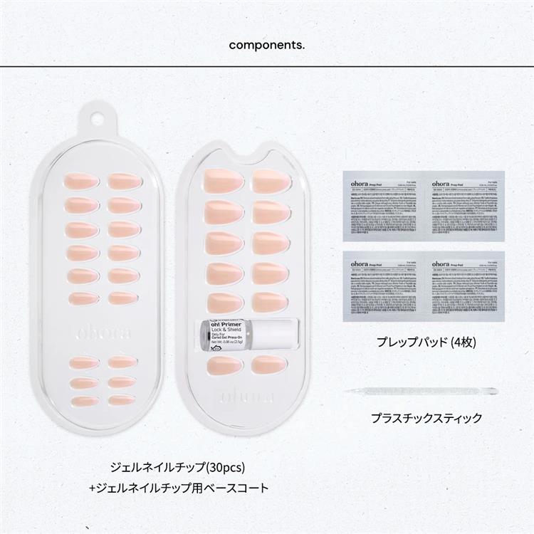 内容量:(ジェルネイルチップ )30pcs、(ジェルネイル用ベースコート)1個、(プラスティックスティック)1個