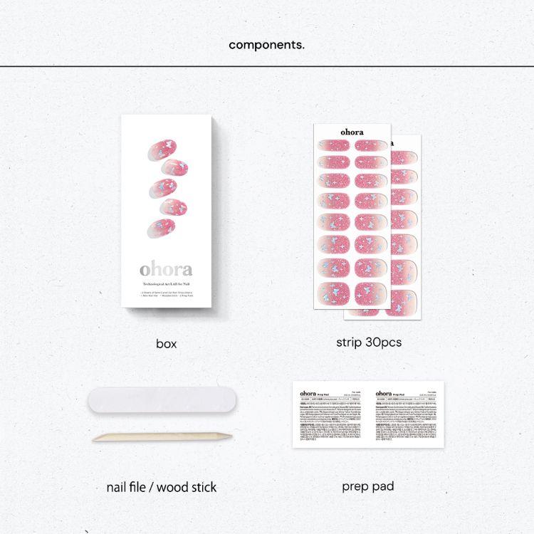 内容量:(セミキュアジェルネイルシート)2枚、(ミニネイルファイル)1個、(ウッドスティック)1個、(プレップパッド)2枚