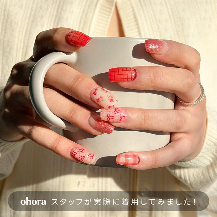 鮮やかでありながら強すぎないレッドトーンを使うことで、指先に明るく華やかな印象を添えつつ、さりげないポイントとして楽しめます。