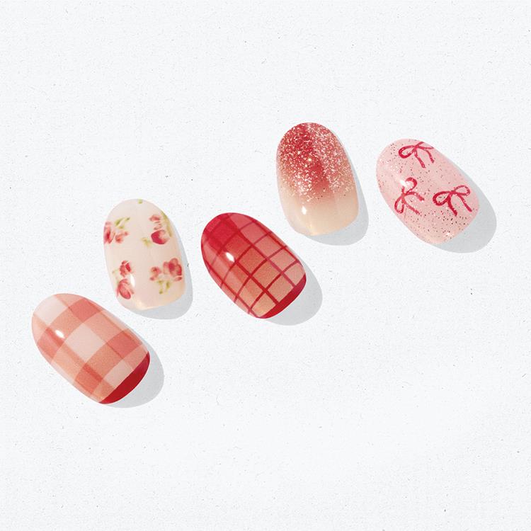 レッドのフラワーパターンがフェミニンな雰囲気を引き立て、さらに2種類のチェック柄を加えることでデザイン全体に遊び心と変化をプラスしました。