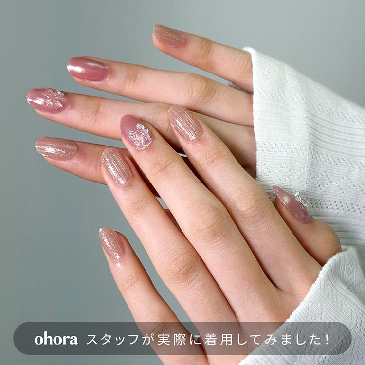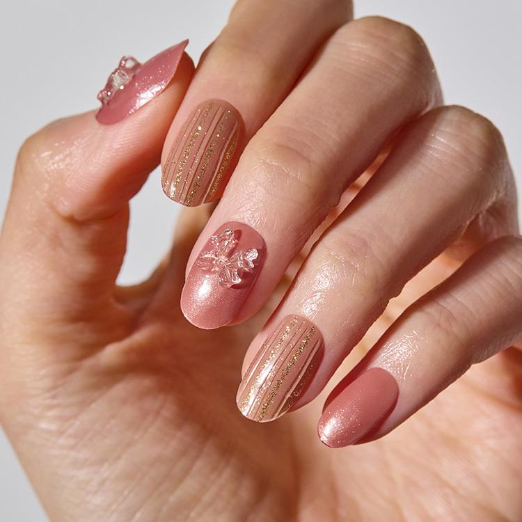 3Dエンボスとグリッターラインが立体感ときらめきをプラスし、指先に繊細な表情を与えます。