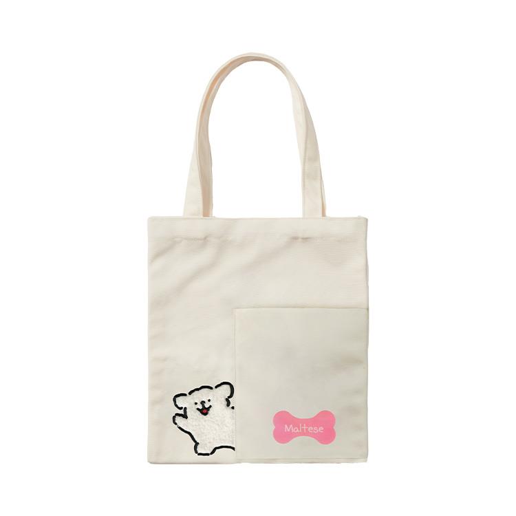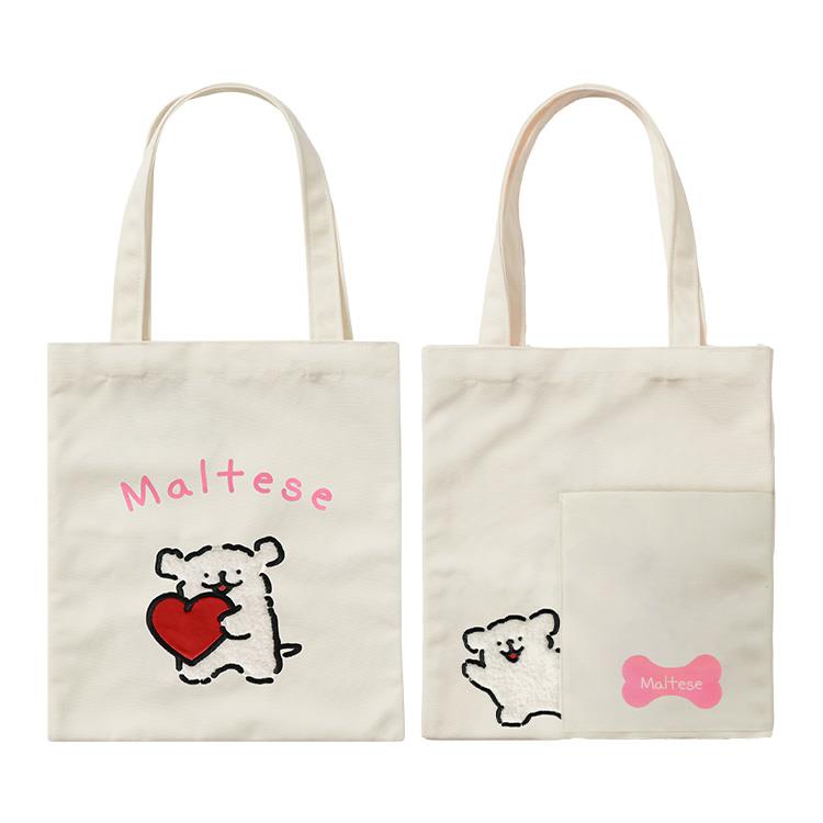 アジア各国で話題の「Maltese(モルチーズ)」のイラストが目を引くマルチエコバッグです。