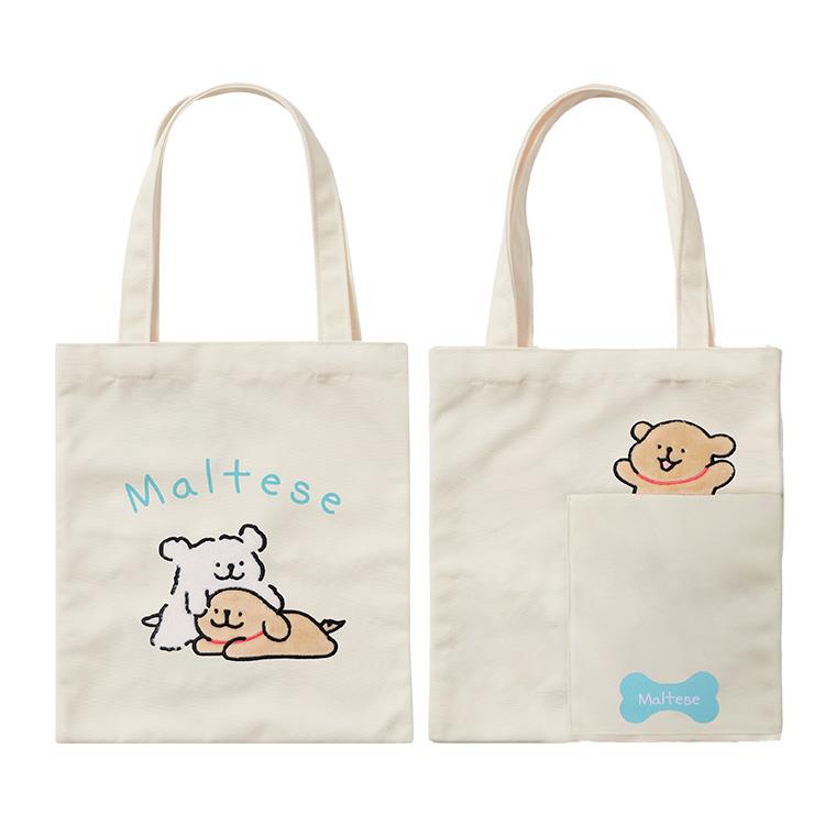 アジア各国で話題の「Maltese(モルチーズ)」のモルチーズ&レトリバーのイラストが目を引くマルチエコバッグです。