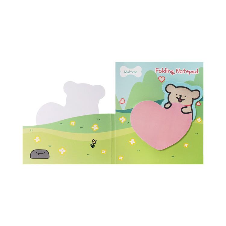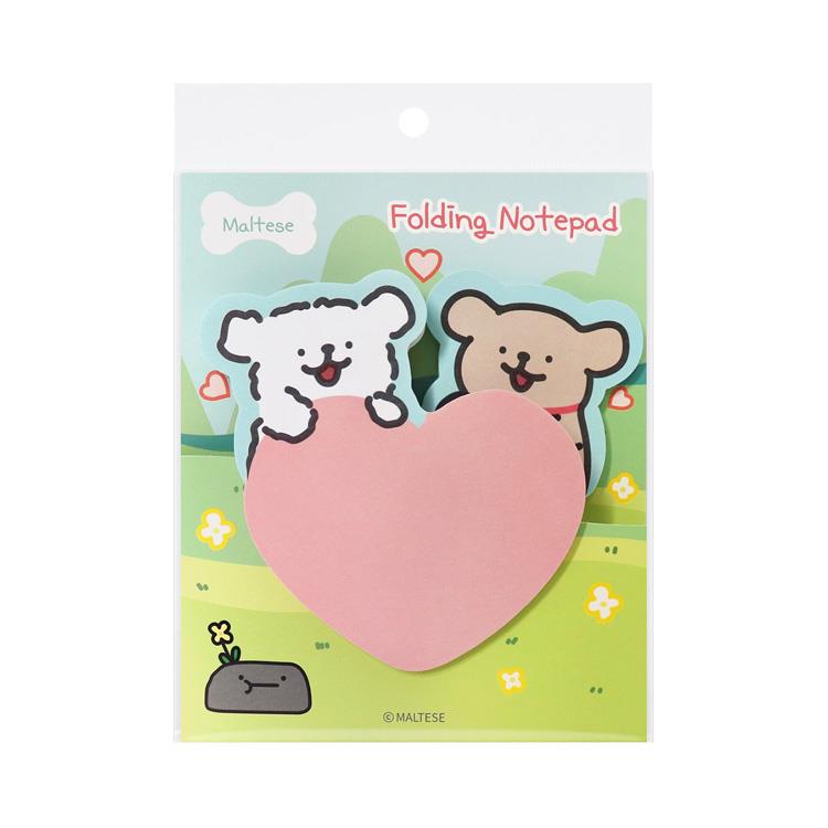 アジア各国で話題の「Maltese(モルチーズ)」のモルチーズ&レトリバーがちょこんと乗ったハート型のメモです。