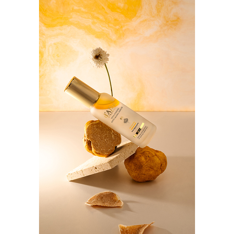 サジー由来ウォーター*1 58%とホワイトトリュフウォーター*2、8種のブレンディングオイル*3配合のダブルレイヤーセラムで、お肌にうるおいとツヤを与えます。