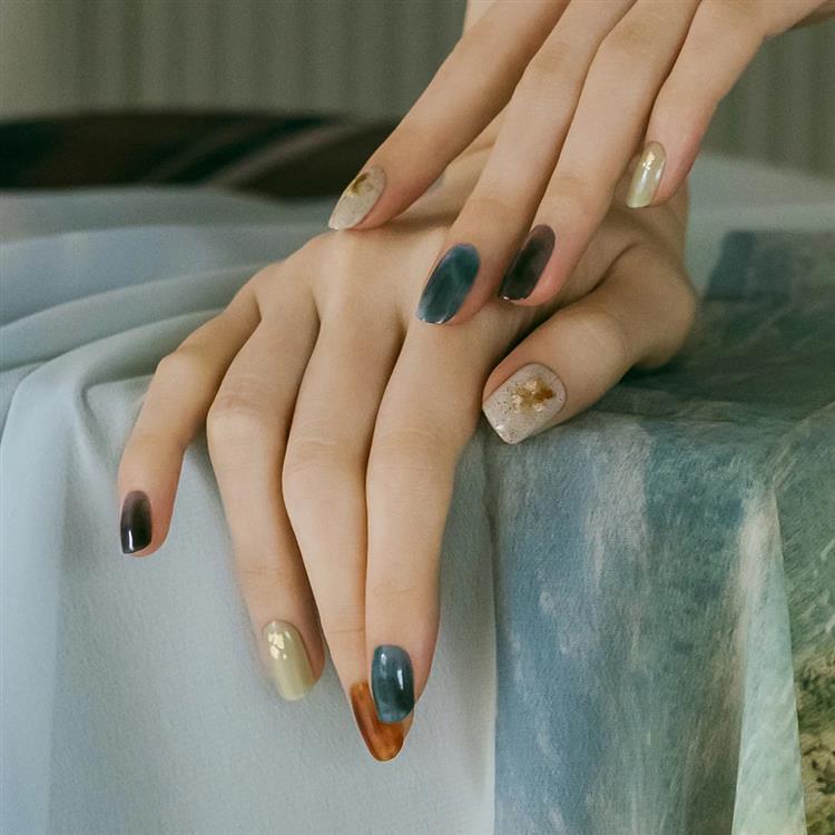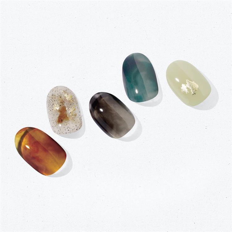 透明感のあるカラーが美しく、ひとつひとつが天然石のように指先を彩るデザイン。