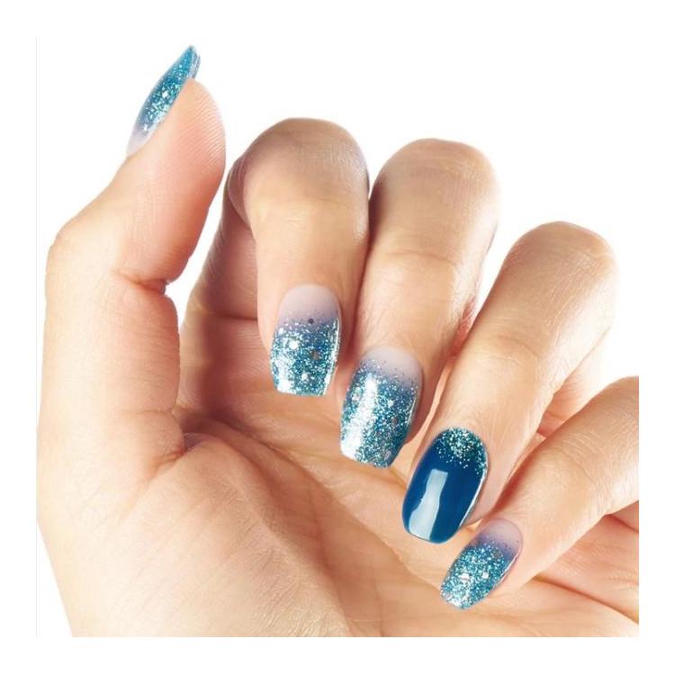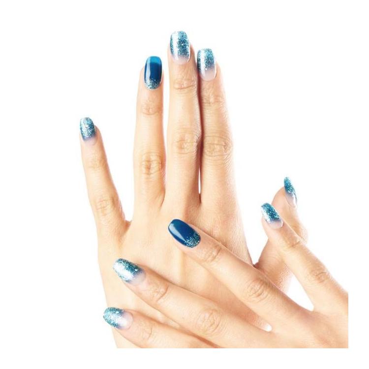 深いネイビーカラーにグリッターのグラデーション、大きめのホログラムが浮かび、クールな爽快感と華やかさで魅了します。
